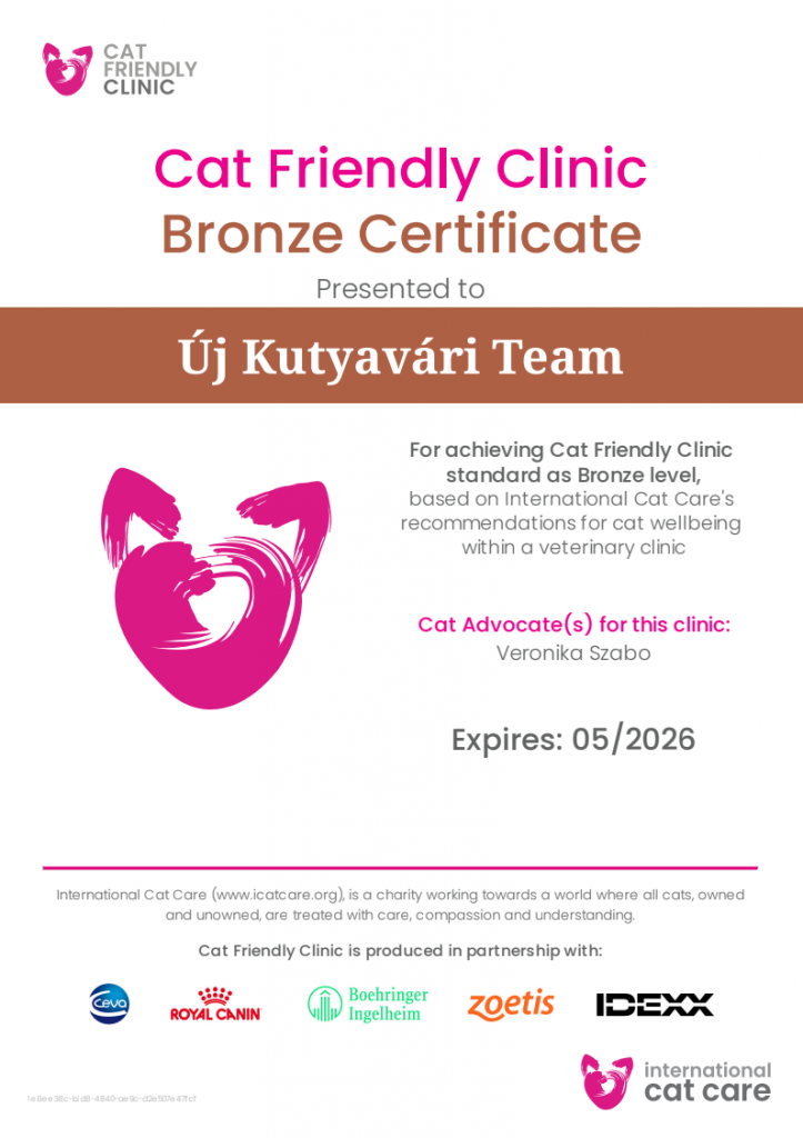 2022 áprilistól Bronz fokozatú akkreditált intézményben várjuk Macska-pácienseinket (is).